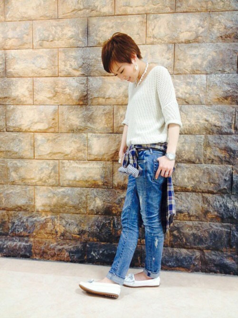 goa大宮店STAFFのニット/セーター「麻レーヨンドルマン7分袖Top`s」を使ったコーディネート