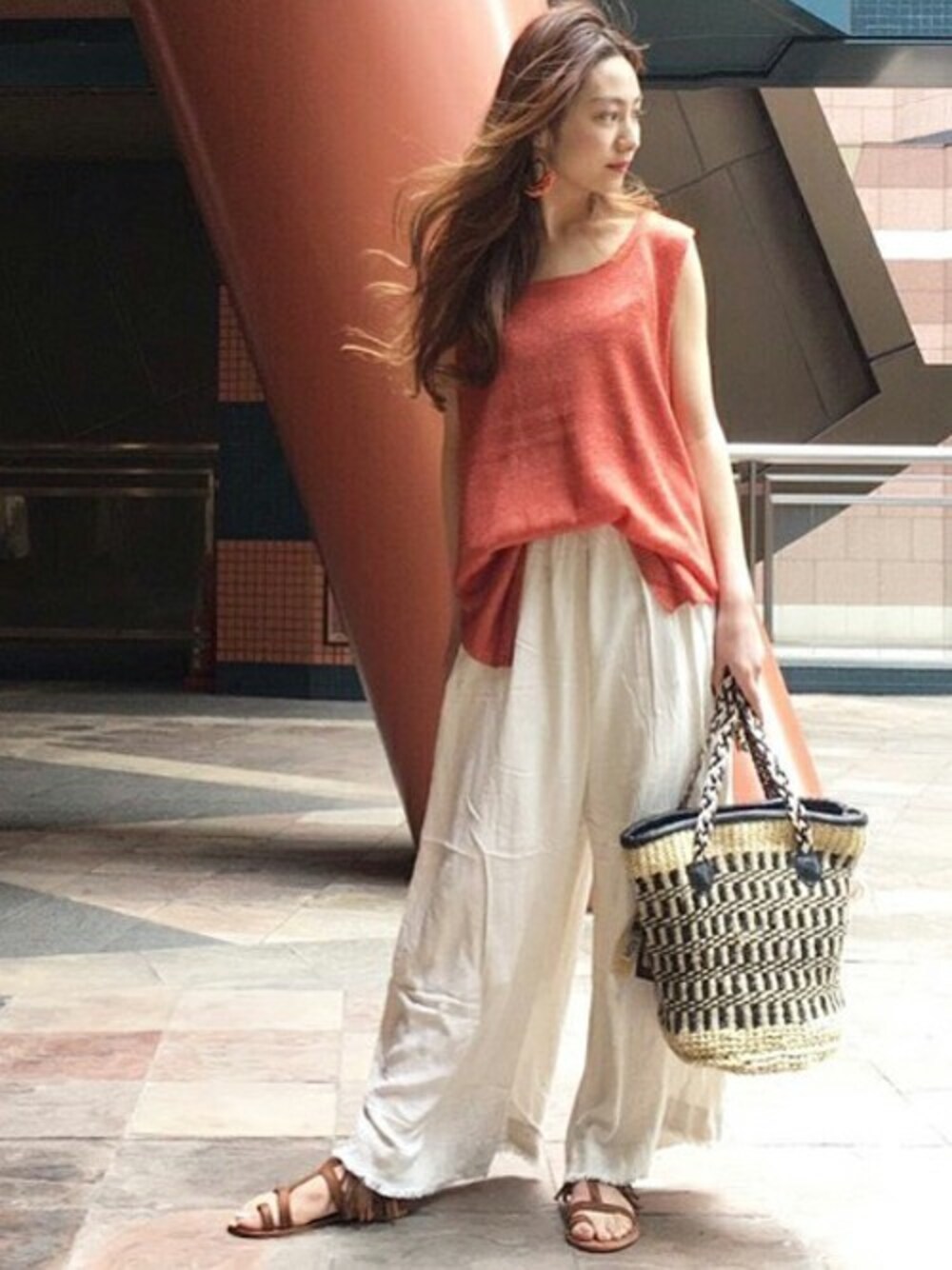 リネンニット&ワイドパンツ 爽やかに着用できるリネンニットベスト。夏に映えるビタミンカラーがおすすめ☆