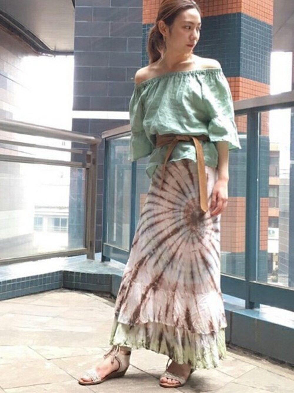 goa-snapのスカート「レーヨンスパイラル Tie-Dye ラッフルラップスカート」を使ったコーディネート