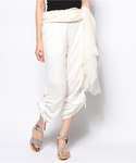 レングスの調節が可能な着回し力の高いバギーパンツは、同素材のストールとSETアイテムなんです! ホワイトとベージュでまとめたカジュアルコーデは、ヌケ感がポイントです!
