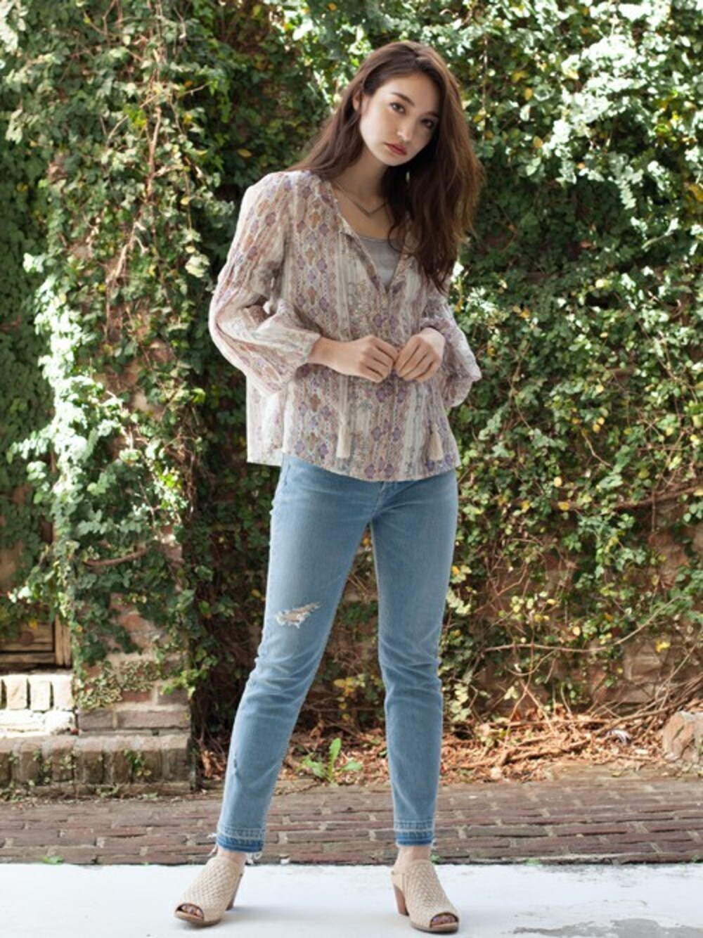 goa-snapのシャツ/ブラウス「Antique Striped bouqet ブラウス」を使ったコーディネート