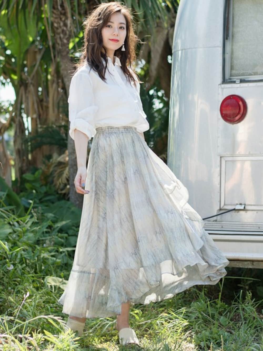 シンプルながら洗練されたフォルムは一枚で夏らしい雰囲気を醸し出します。 ゆるっと肩をドロップさせたデザインは、スタイリングに抜け感をプラス。 スカートは歩くたびに揺れるシルエットはエレガントな演出をしてくれます。