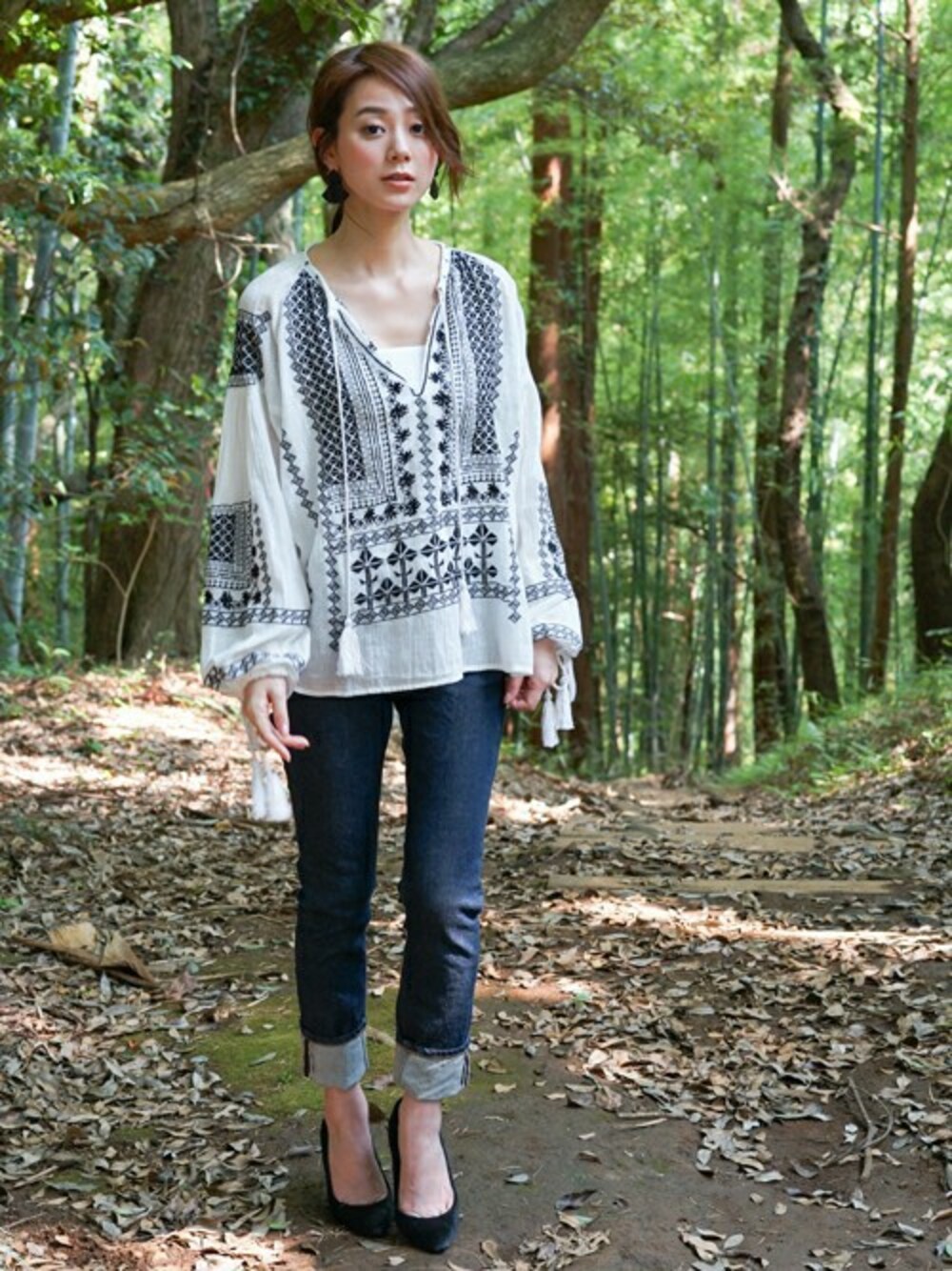 秋は刺繍トップス×デニムで綺麗めスタイルがおすすめ。 ボヘミアンな雰囲気が今っぽいです。 トレンドのバルーンスリーブもおしゃれ感を惹きだしてくれる優秀アイテム。 タイトスカートやワイドパンツとも相性が良いので是非合わせてみてください。