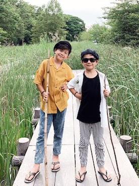 7歳と6歳の丸顔兄弟☺︎☺︎ 130cm、120cmです。 カラーやアイテムで統一感が出るように 気をつけています♡ Instagram☞leialoha319
