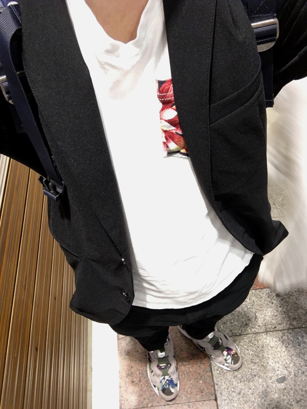 いつもSAVE,いいねありがとうございます(o^^o) 白Tのポッケの柄とポンプフューリーの柄を合わせてみました。 雨で肌寒い日や電車や室内の冷房が強いときには羽織るものがあると助かりますね。 これはシワにならないのでリュックにもしまえて便利です!