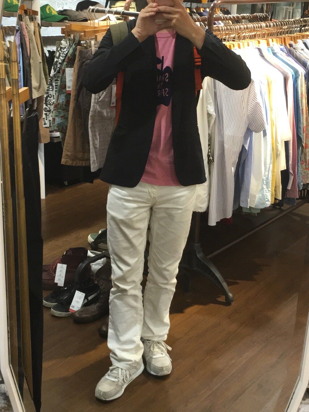 白で爽やかさを出しながらもジャケットを着てカチッとした感じを出してみました