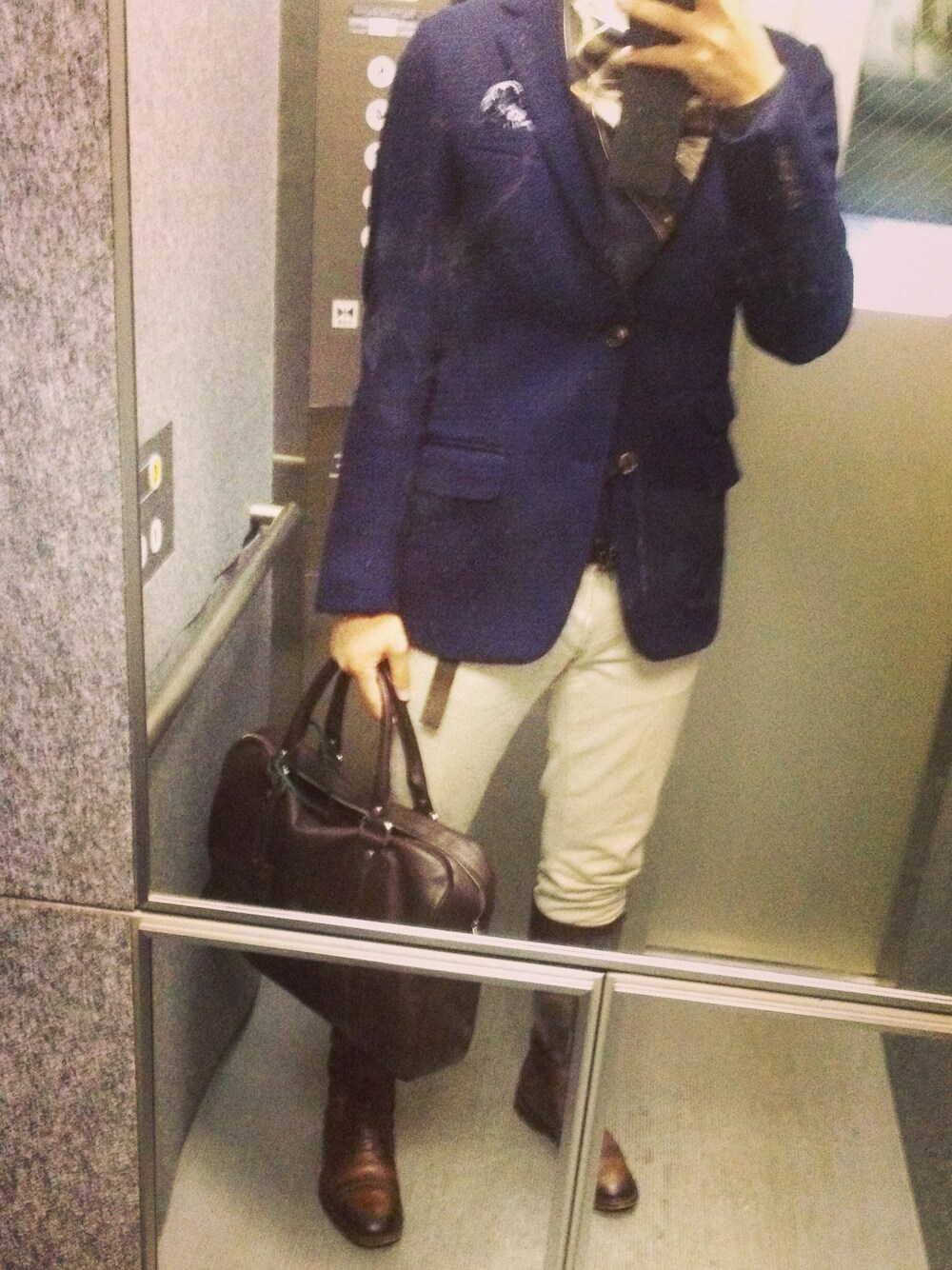 Jacket:GUCCI knit:GUCCI shirts:GUCCI pants:GUCCI shoes:GUCCI stole:GUCCI belt:GUCCI bag:GUCCI 全てGUCCI。乗馬ブーツには鉄板のホワイトパンツを合わせました。こちらは12AWのミラノコレクションで使用されているもの。ニットジャケットは着丈が短いもので、足元とのバランスをとっています。ストールは10AWのカシミア×シルクの物をアフガン巻き。