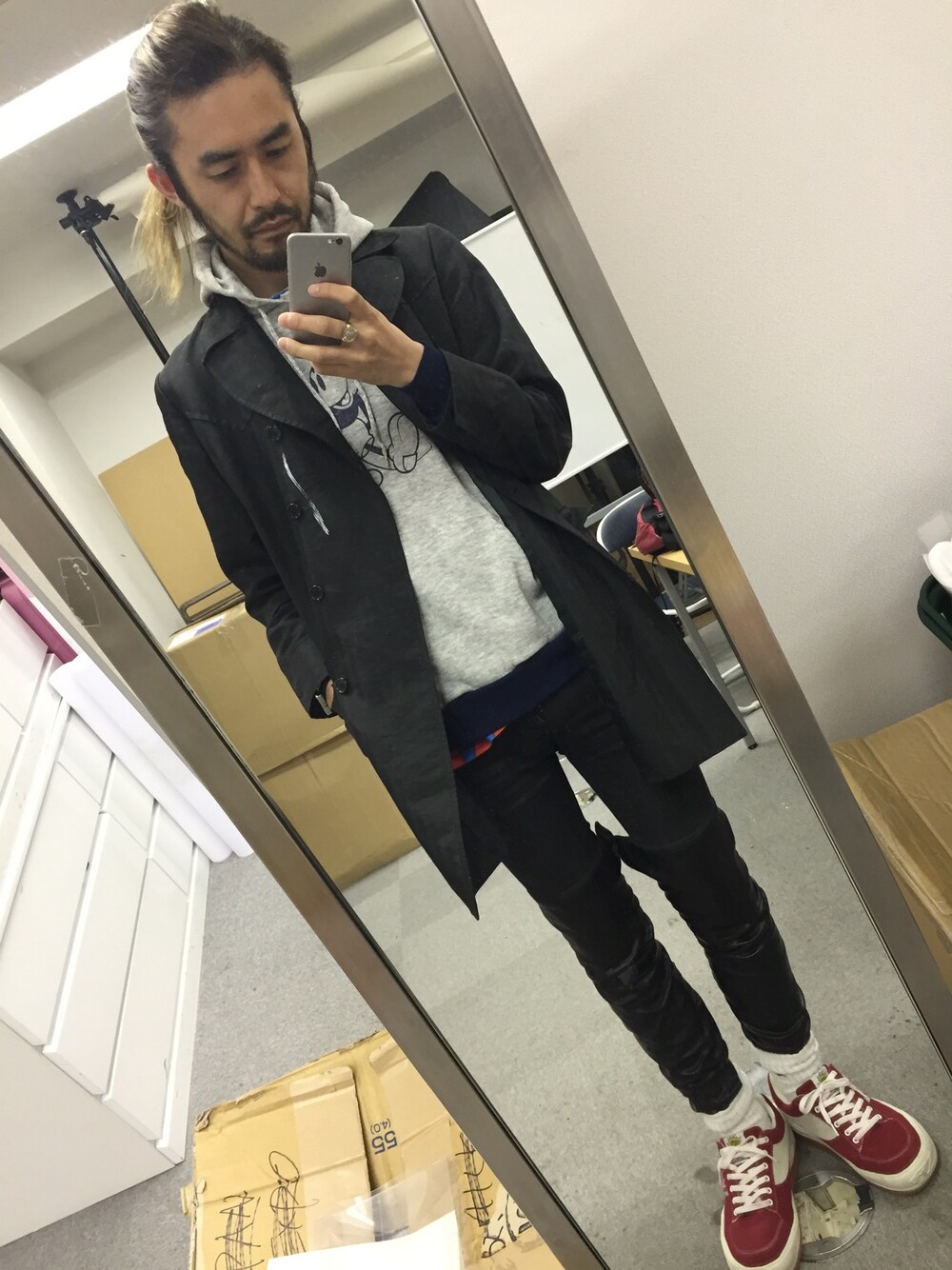 ・コート…古着 ・パーカー…古着 ・スキニーパンツ…古着 ・スニーカー…NorthWave