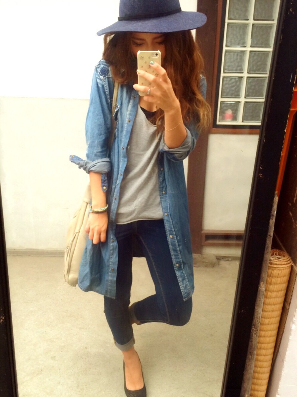 あまりにもニット帽野郎になってたので、今日はハット🎩で決めてみました。 このflamingoのロングシャツ、刺繍がかわいいのに!写らん!💢笑 みえるかなー、、、 寒かったから一時帰宅したときに服チェンジしたので、また後ほど👋 フォロワさんがいっぱい増えて、嬉しい↑↑もっとちょうだい👂笑