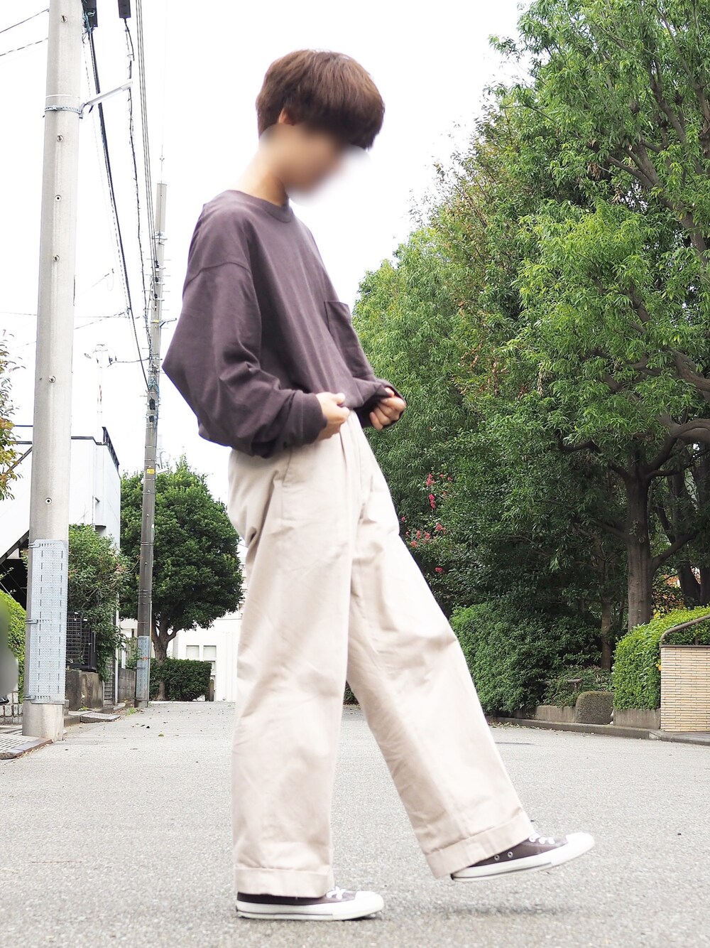 見ていただきありがとうございます☺︎ ・ UNIQLO U のロンTコーデです🐻 ・ サイズは4XLで、着丈の長さはタックインでカバーしてます笑 UNIQLOでもサイズを大きくするだけで高見えする感じがしますね! ・ トップスとコンバースの色を合わせてまとまり感をだしたつもりです⭐️