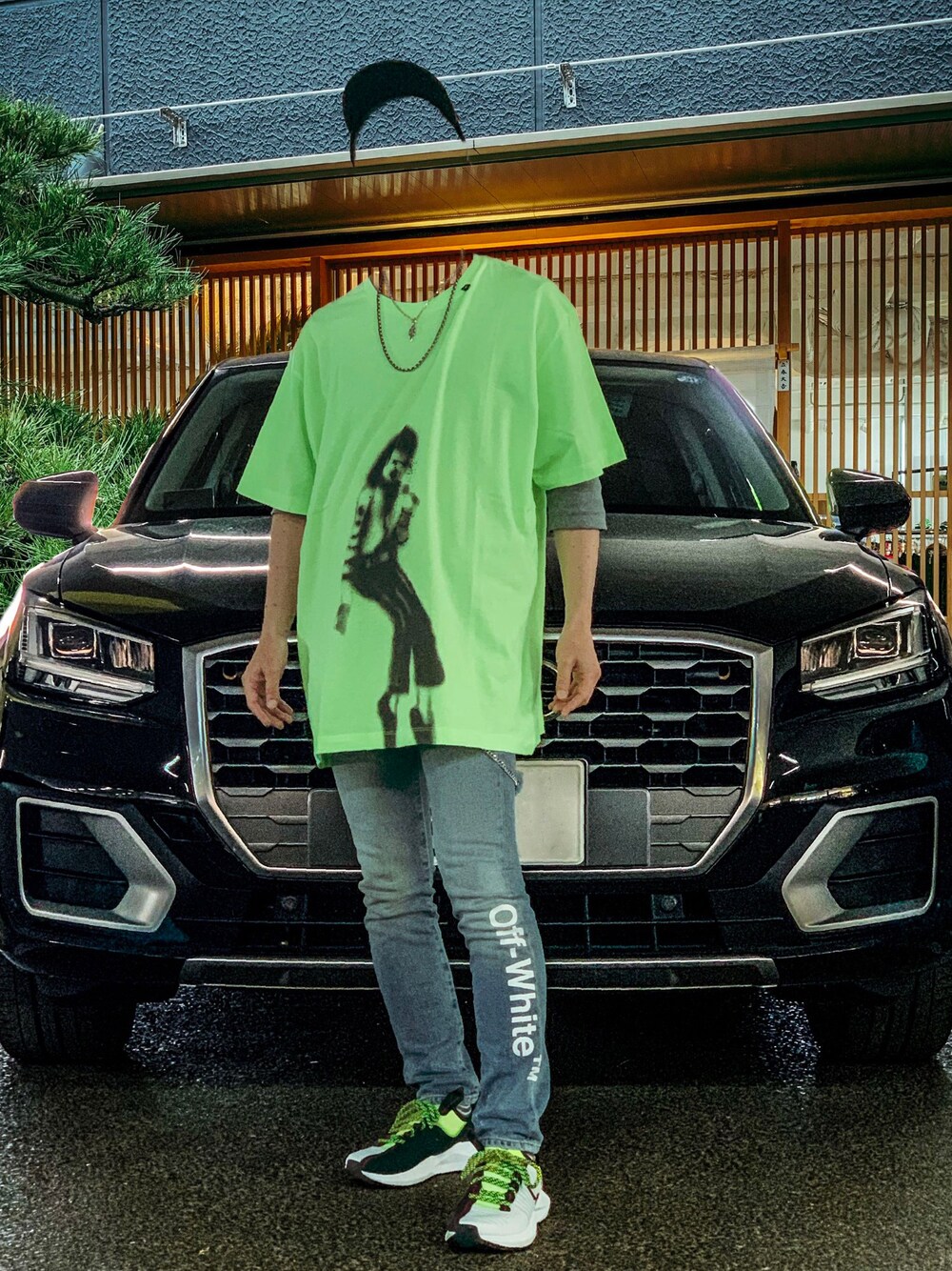 OFF-WHITEのぼんやりMJ T-shirtです。 今どこにでもネオンカラーのアイテムがあるんですね。virgilつながりでVUITTONに行ったのですが、蛍光黄色って可愛いと思いました。