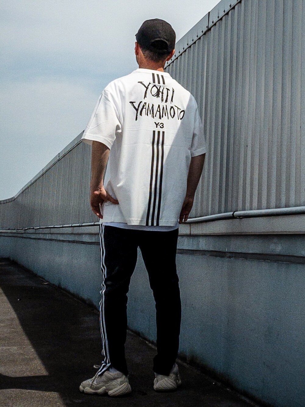 前から見ると真っ白なTシャツ。背中にはY-3のプリントが! 3本ラインを見るだけでスポーティーだと思うよね?