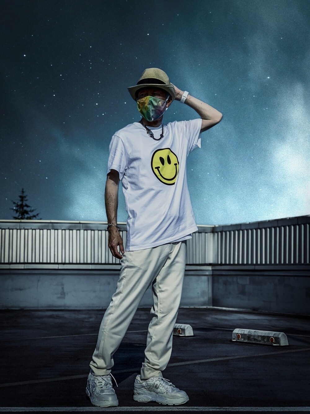 2017年に買ったハットを今初おろししたよ! マスクは自分で染めたよ!