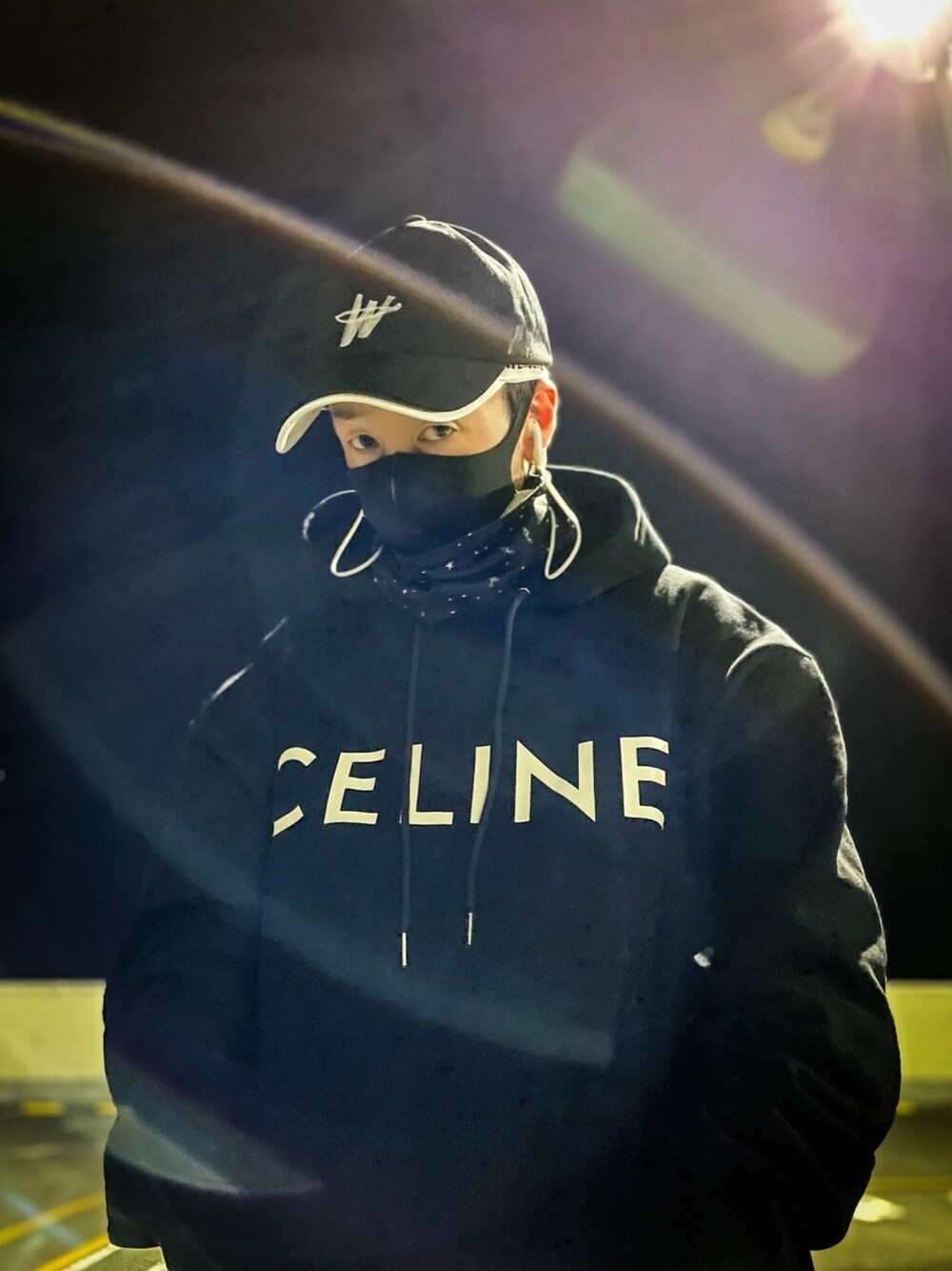 キャップを同じ物で黒と白買ったから、レイヤードしてみたよ。キャップを重ねてかぶってる!