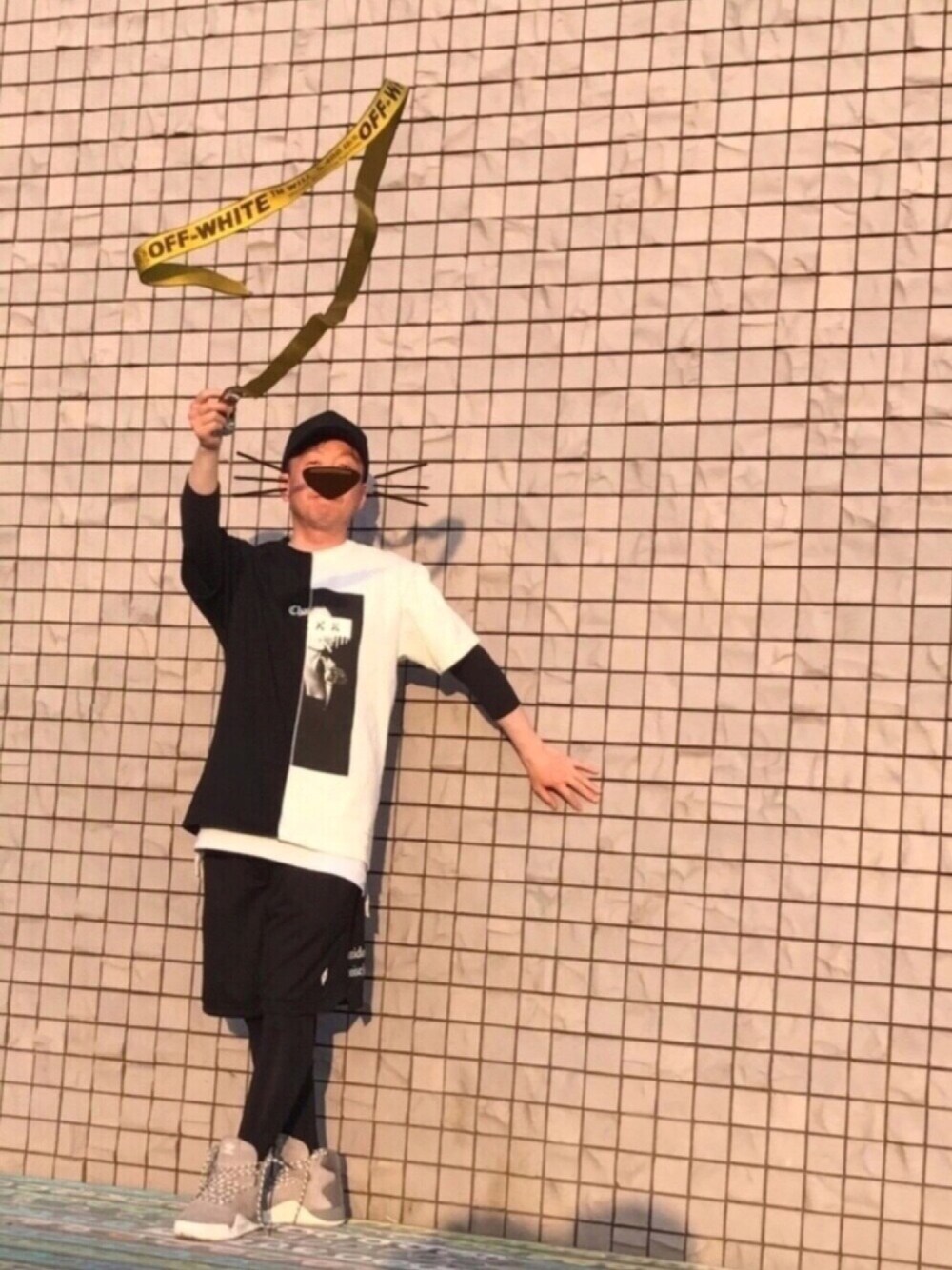 今日は新体操です! 嘘です。 ウォーキングをしていたら、WEARのくすしんさんがWEARのポーズをしながら壁に張り付いていたのを見つけて…ちょっと気まづかったんですが、合流して写真を撮ってもらいました。 最近、off-whiteの200cmのベルトを使ってないなぁと思い新しいコーデを考えました。コーデ?違うか。 Tシャツは2枚を1つに合わせた限定Tです。上手い商売だなと感心しています。仮に余った商品だとしたら、それで商品力が一気に上がります。まあそれで買ったのが私なんですが! いつもマルセロとかoff-whiteばかりWEARにあげていますが、本来GOD SELECTION XXXが好きです。前にも書きましたが、初めてのXLサイズが思いのほか良くてまた着てました。 中にムラスポで買った七分袖を着用しています。 Tシャツの袖部分が広いので貧相な感じになるのを防げるかと思って着てみました。 今改めて見ると、何でこの靴を履いてたのかなと思いました。全体のバランスに合っていないような。靴紐をくるぶしの上から縛ってすらいません。 小窓にいい感じで撮れたと思う写真を載せました。今回は無加工ですが、同じ日の写真がこんなにも雰囲気かわるんだなと。自画自賛です。 というわけで、今回のコーデのポイントは… off-whiteのベルトです!宙を舞っています。 しかも、ちょうどoff-whiteの文字が見えるタイミングです。 ぶっちゃけ、コーデも何も関係ないです。この瞬間を皆に自慢したかった!それだけです。 何百、何千と撮り直しをするグラビアアイドルの気持ちが少しだけ分かった気がします。 …そうです、何回も撮り直しましたよ。地味だし、何やってるのかな?って複雑な気持ちになりました。そういうものですよね、写真って。