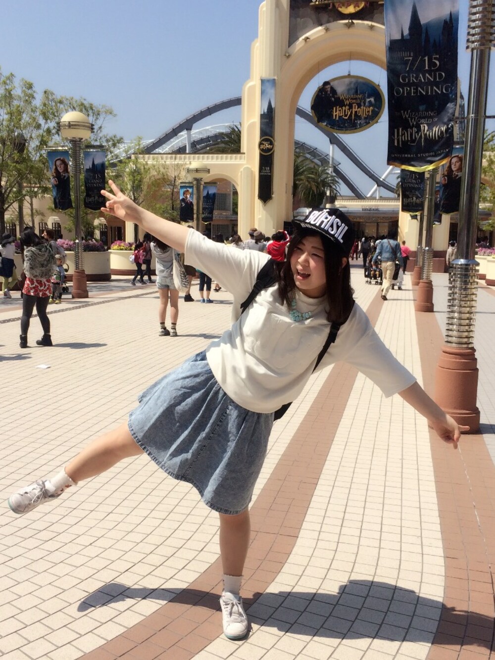 in USJ (ゝ◡∂`) ♡♡♡ 久しぶり の 更新 です .。○ 1時間 かからずに バックドロップ と ハリドリ 両方乗れちゃった ✡.° スペファン も 乗って 今からミナミ! おくつ は ナイキ の 白×水色 ⸌ᵋ̈⃝͚⸍ おしゃれ って 難しい けど 楽しいね ♡.°⑅