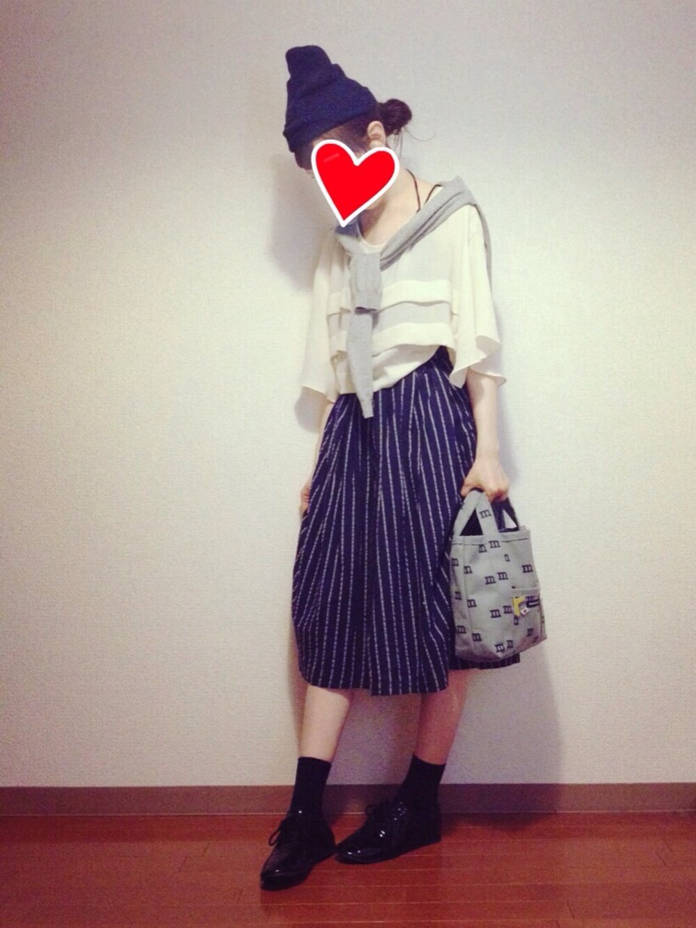 うー子のスカート「!KBF ストライプギャザータックスカート」を使ったコーディネート