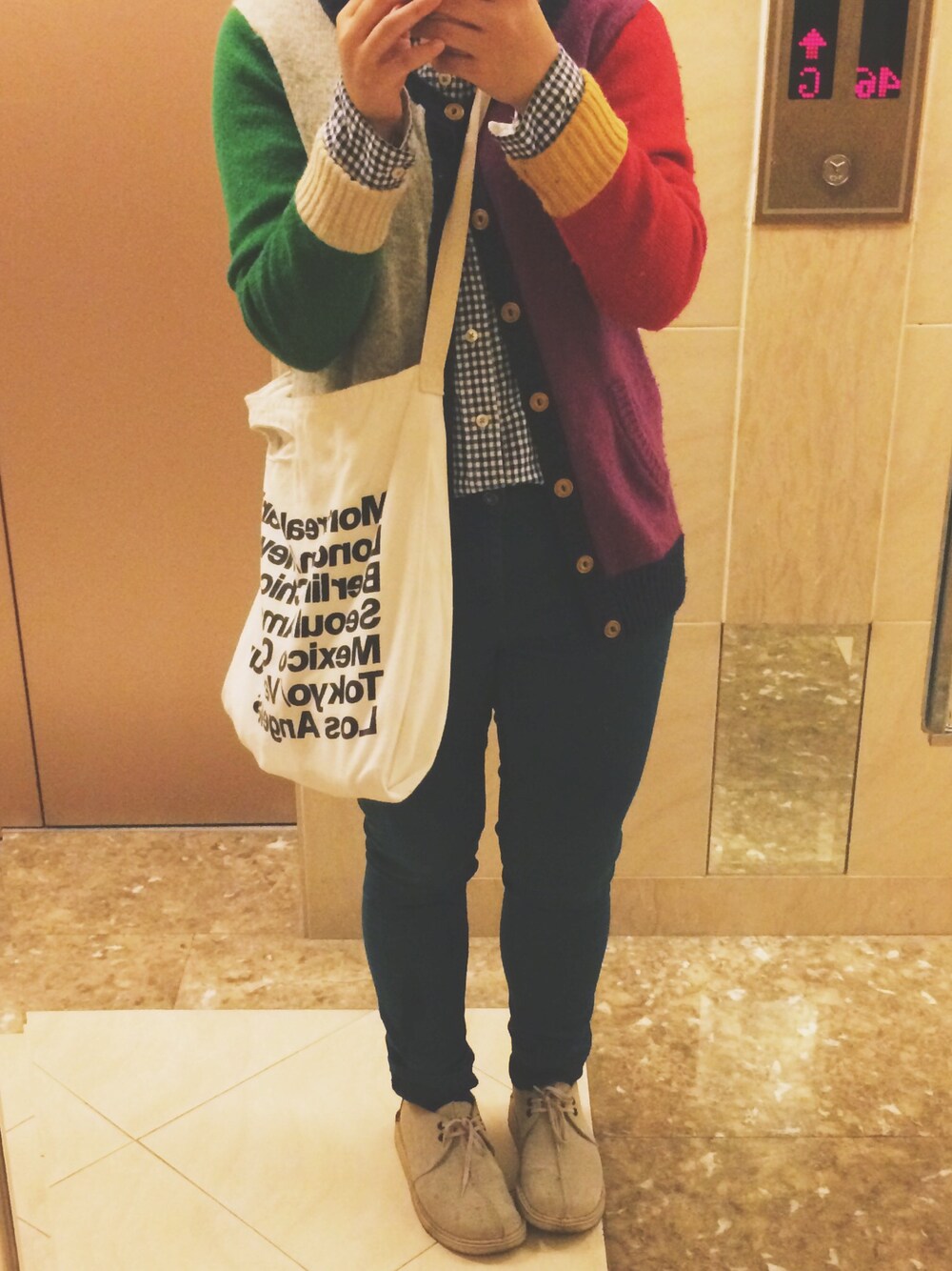 Shirt: cube sugar Cardigan: cube sugar Pants: indigo Shoes: clarks Tote bag: American apparel