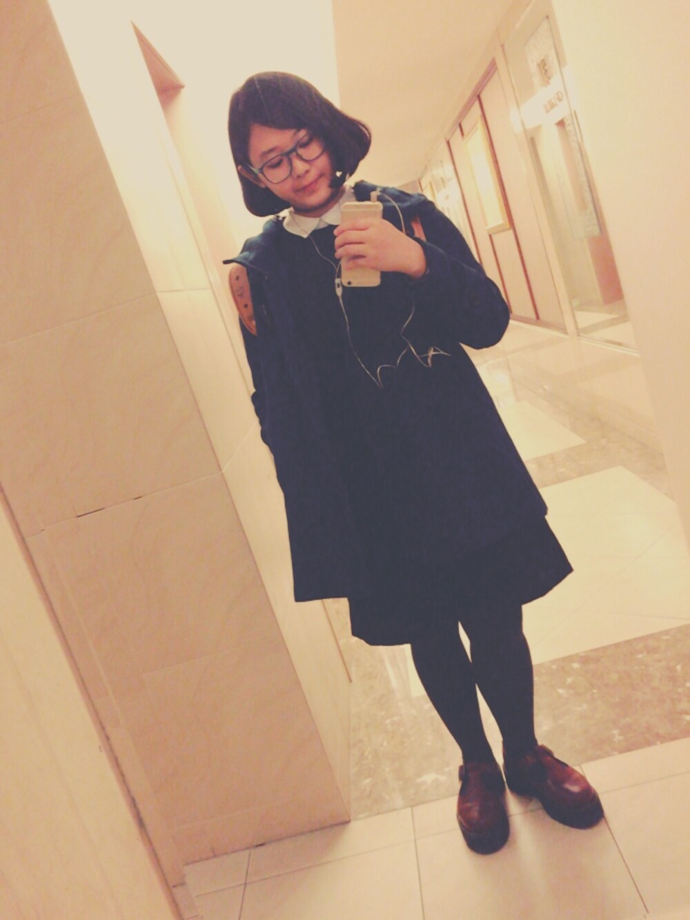 Dress: Earth music ecology Leggings: log on Shoes: Dr martens Coat: caliner Bag: mcm