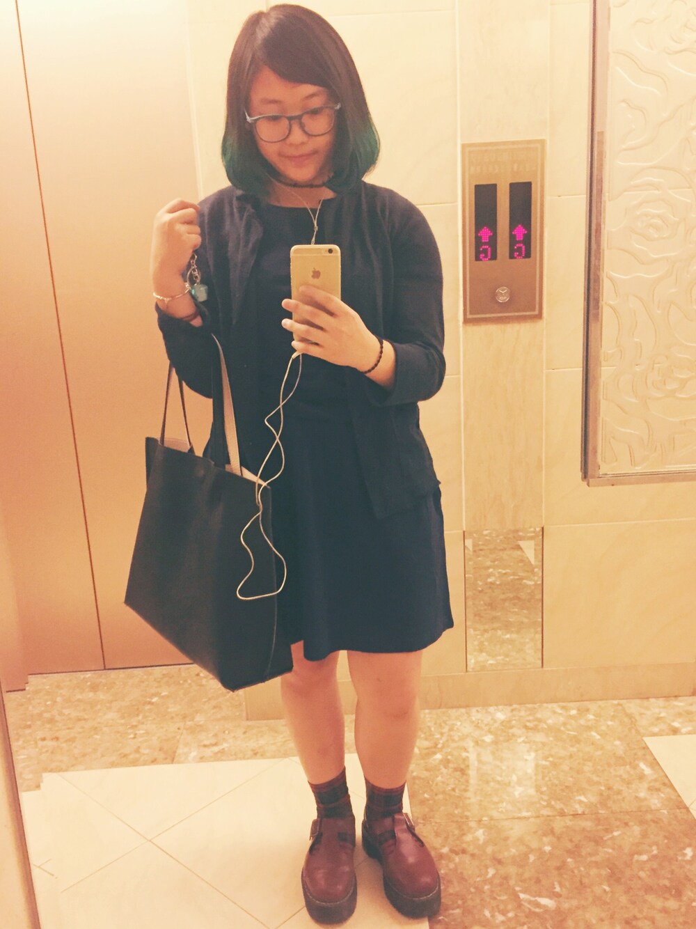 Dress: haco Cardigan: ichi Shoes: Dr martens Socks: 靴下屋 ✌🏿️