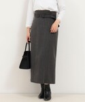 kanazashi(ノーリーズアウトレット越谷レイクタウン店)のスカート「ストライプハイウエストナロースカート」を使ったコーディネート