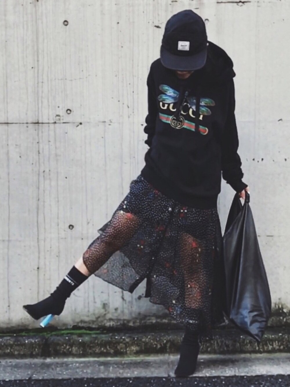 ふわふわのシフォンドレスの上からスウェットをガブリと被ったシャツワンピの着回しコーデです。印象がガラリと変わって気分も上がりました。 フーディーのフードは人生の中でも、突然の雨の日以外被ったことはないけれど、何故だかフード付きが落ち着きます。 ★
