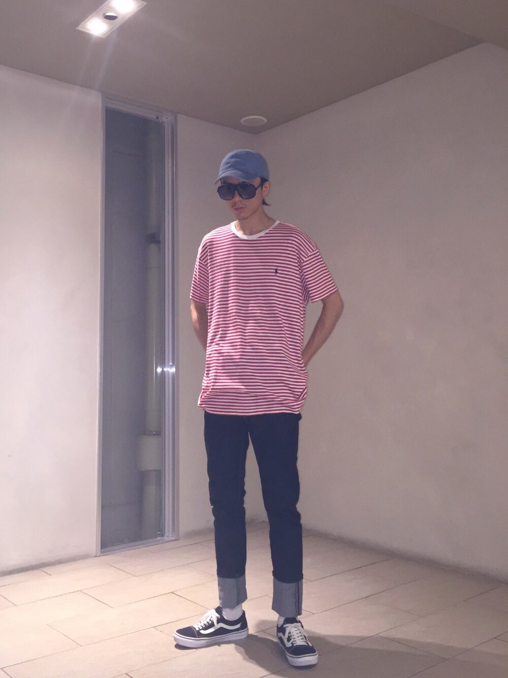 渋谷T(古着屋)に赤白のボーダーTシャツがあったので購入致しましたm(._.)m ビックシルエットとリーバイスのスキニーで今っぽさを出しました。
