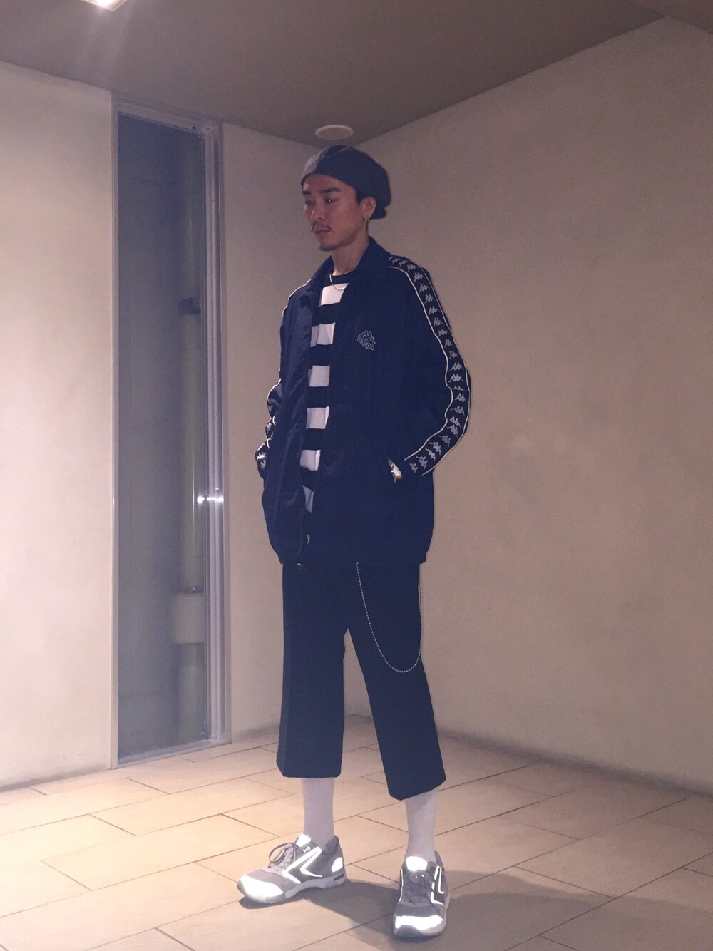 kappaのナイロンジャケットです! Tシャツとスラックスをモノトーンにしてシンプルコーデを意識しました。 キャスケットはニューヨークハットです。