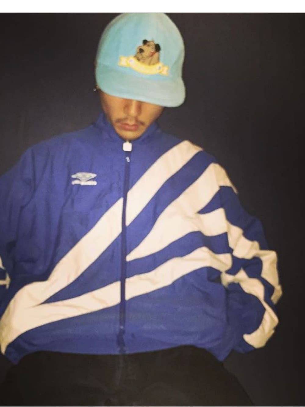 ケンケンのフリースキャップです。 umbroのナイロンジャケットにリーバイスの501です。