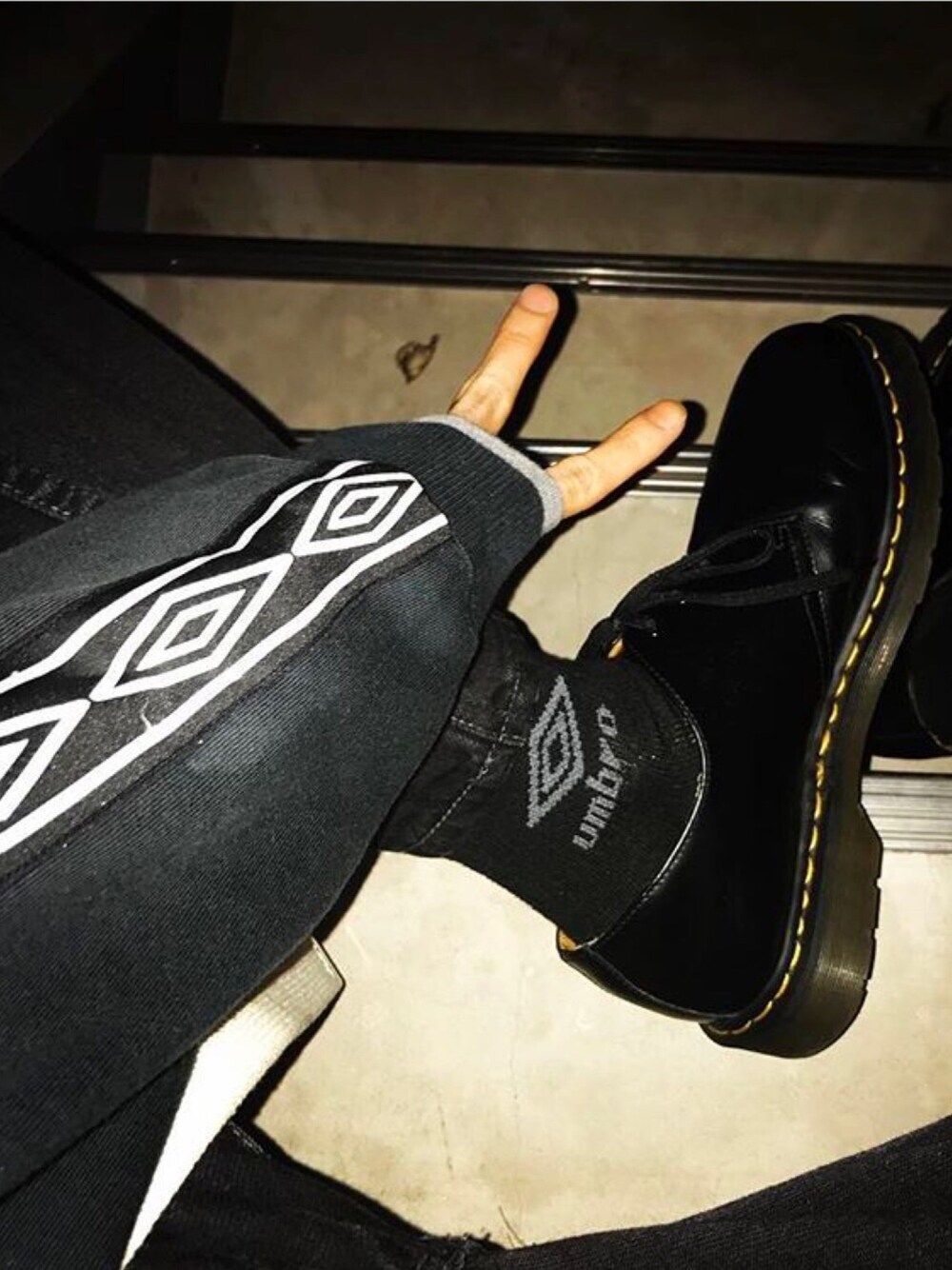 アンブロのトレーナーと靴下です。 ドクターマーチン、リーバイス501と合わせて、ブラックコーデしました。
