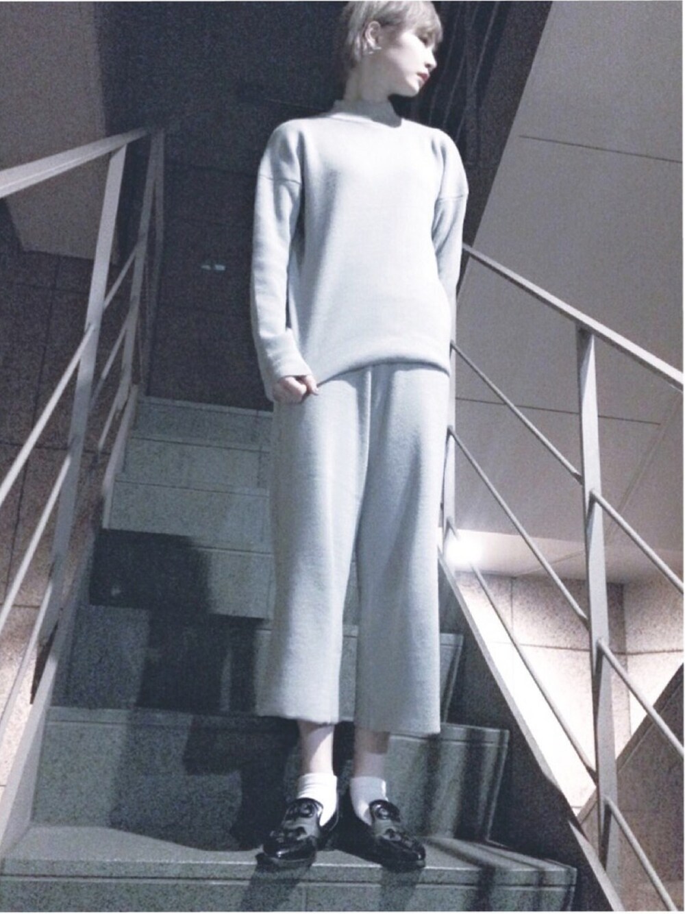 ブラック系のシューズを着用したレディースの冬コーディネートの1枚目の写真