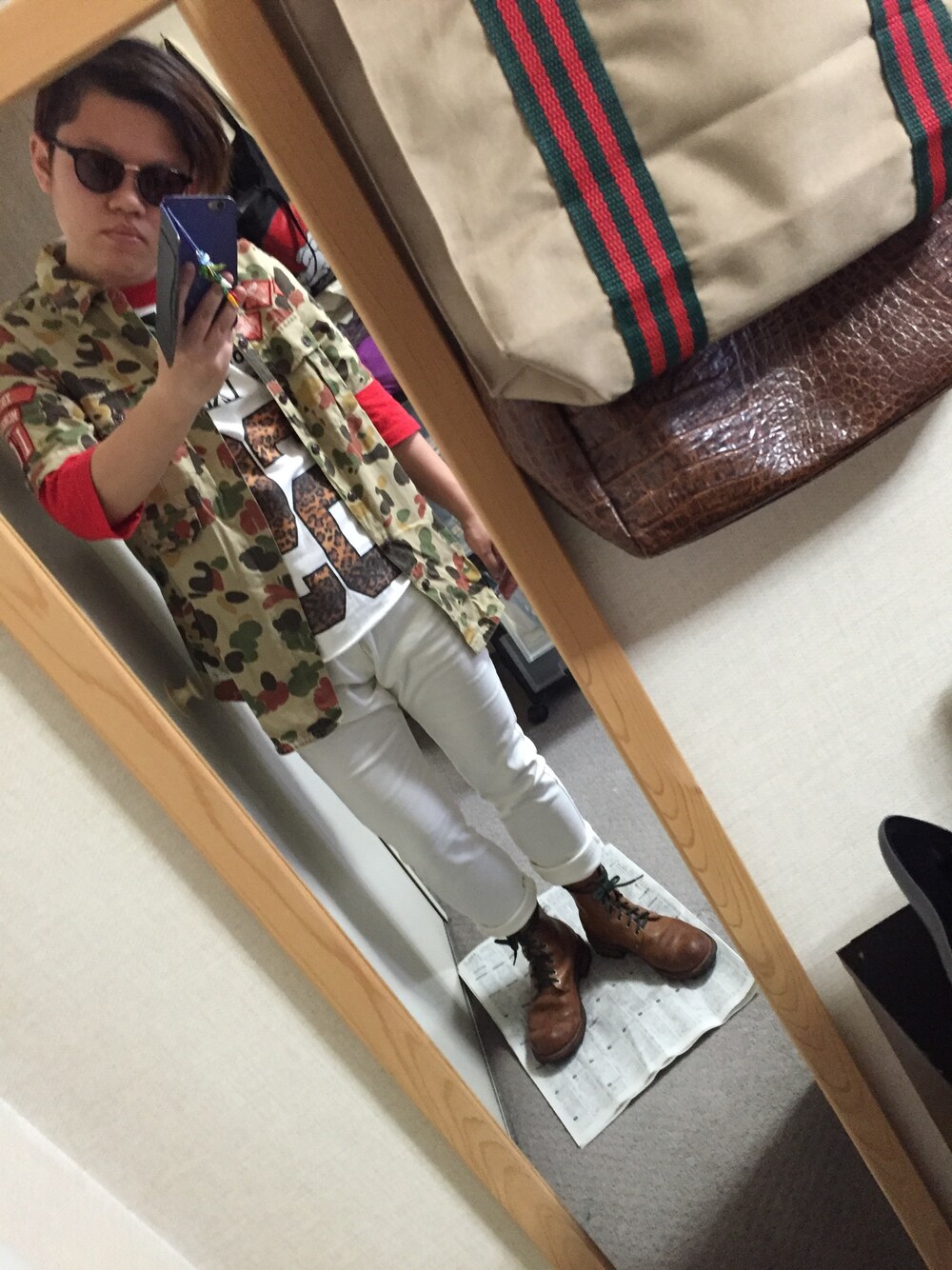 やっぱり載せようコーデ カモフラ過ぎないのが好き! 中に着てる7分Tシャツのヒョウ柄&赤色! キレイめ路線から外れるのがポイントでした。