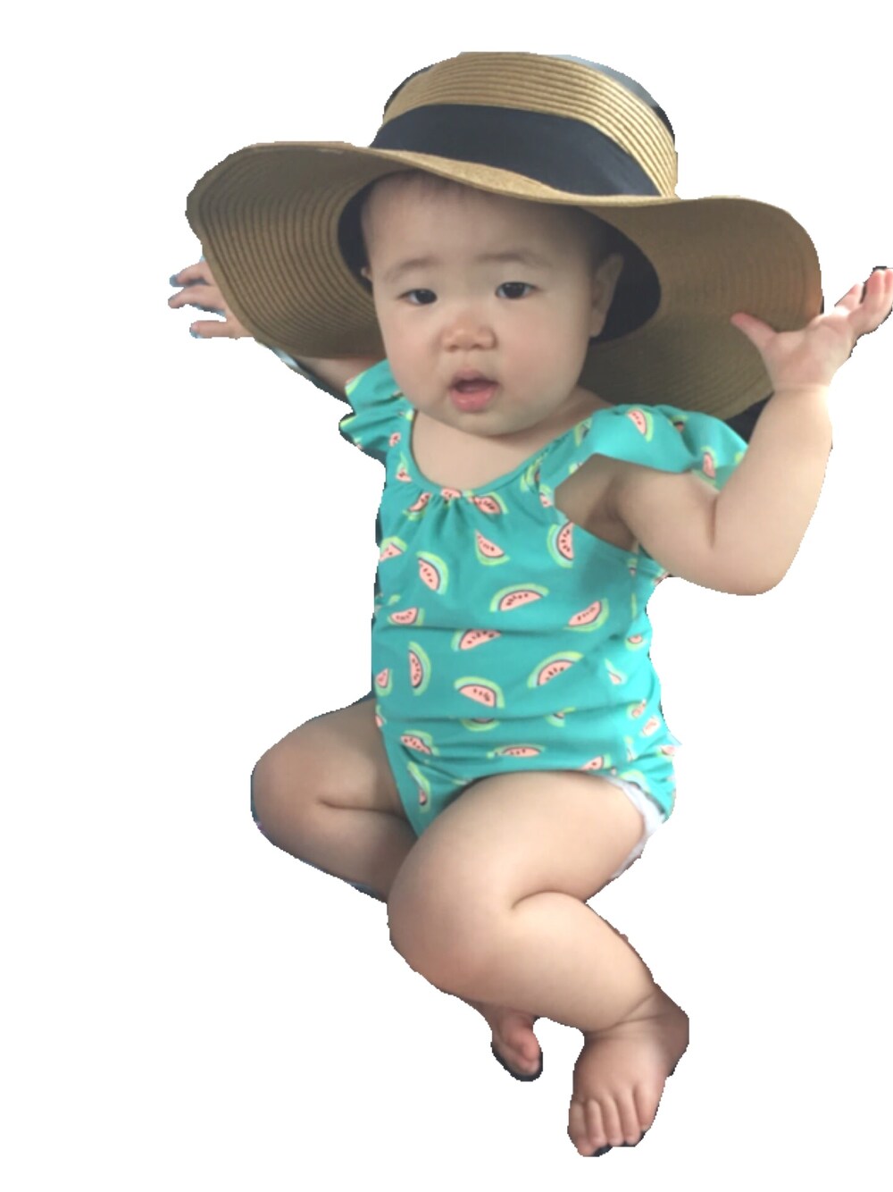 沖縄旅行で着た水着♡ babyの水着は人気と知って、 旅行が決まるだいぶ前からgetしてました😚 海では砂浜も水も怖くて、すぐ退散だったけど😂 スイカ柄がお気に入り〜♡