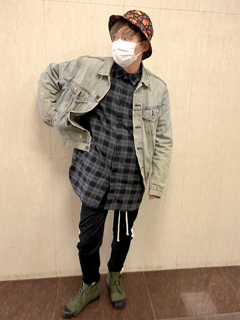 古着デニムジャケットと長め丈のシャツでマニッシュに。 このパンツのシルエットがすき! Instagram @gomashio punch YouTube → kinemarge(キネマージュ)