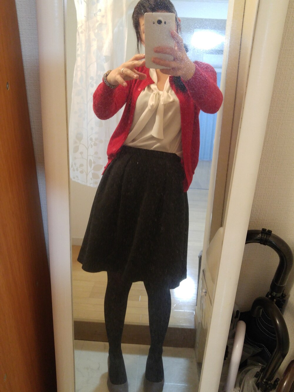今週は行事があり、忙しい。 朝夜残業やむ無し‼ 今週はお弁当作るのも諦めた次第です。 服も今週はあまり考えずに着ています。 ナチュラルビューティーベーシックのブラウスはお気に入りです。 赤い服は私のやる気を表現しております。