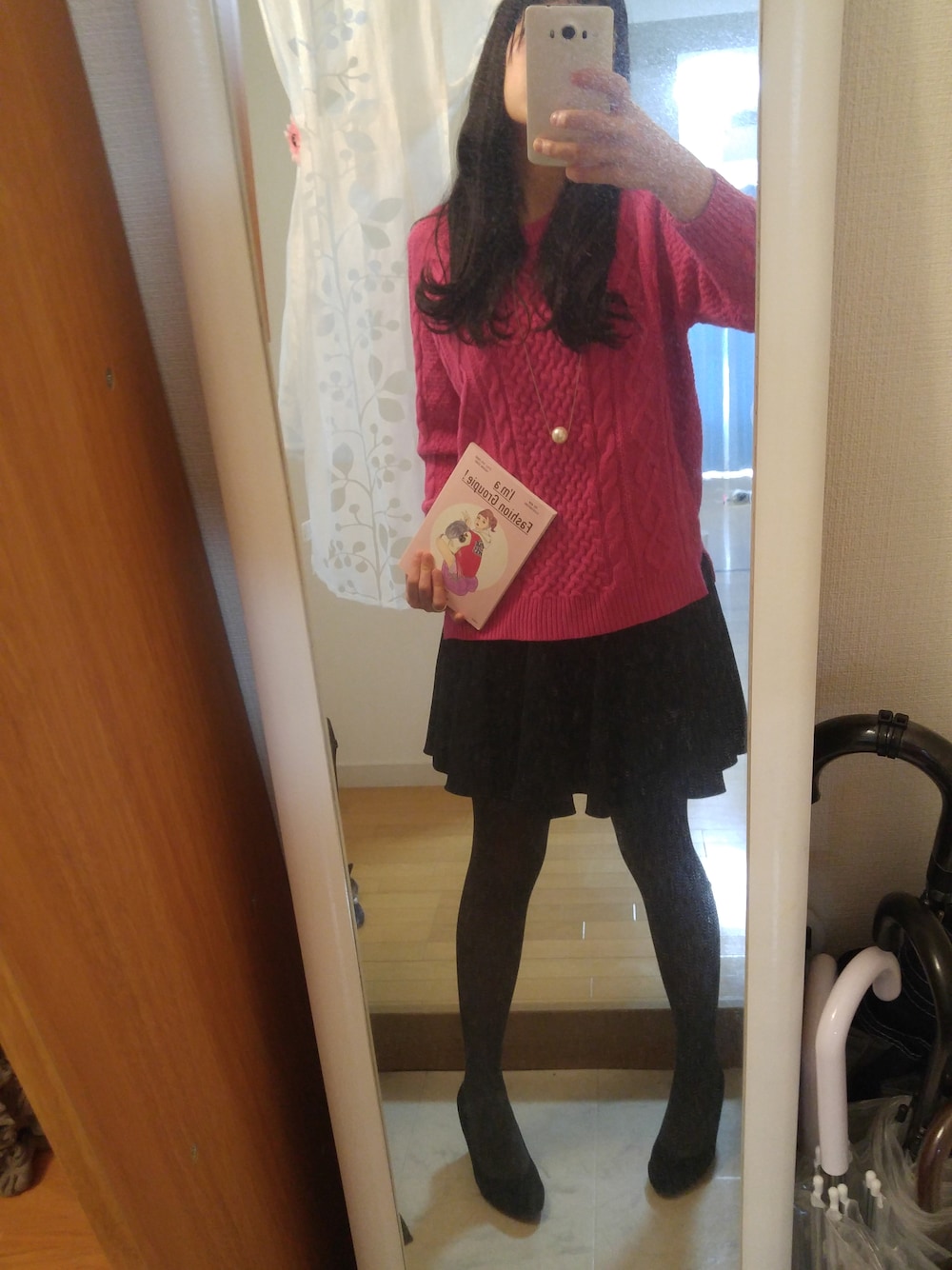 久しぶりに引っ張り出してきたピンクのニット。 色はよくわからないがネイビーのスカートとグレーのタイツ。 墓参りに行く。