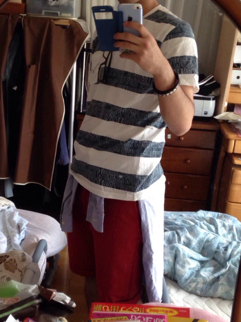 ろで男のTシャツ/カットソーを使ったコーディネート