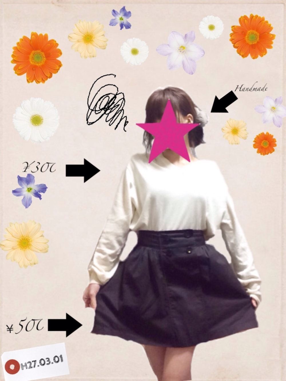 初投稿。古着でケチケチコーデ。(笑) ヘアゴム手作り。もふもふ