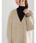 まさこのカーディガン/ボレロ「パール釦起毛Vネックミドルカーディガン」を使ったコーディネート