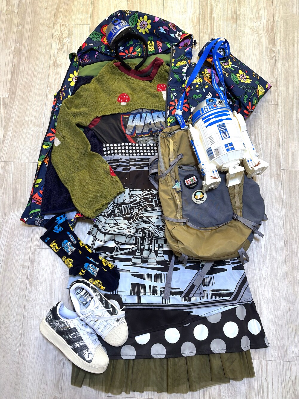 ディズニーランドに行った時のコーデ スターウォーズ好きなので、今回はめっちゃごちゃごちゃしたコーデになってしまいましたが、 Eーんです!www (カビラ風