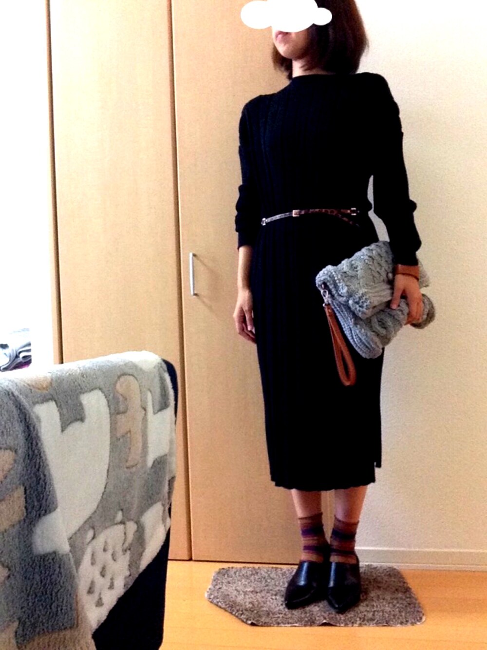ニットロングワンピで秋らしく。