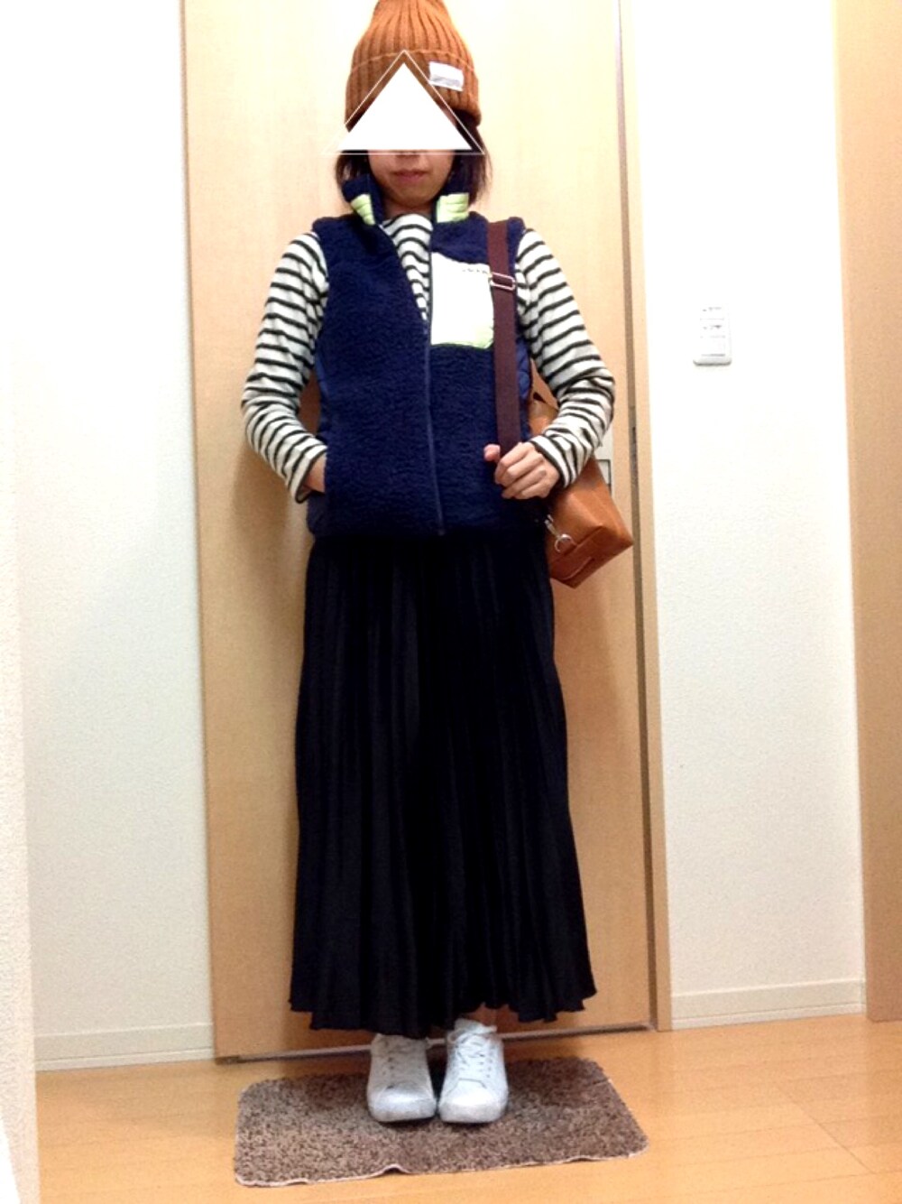 アウトドアコーデ(風) addidasベストはアウトレットで70%オフくらい。 ボーダーカットソーは起毛で毛布みたい◎