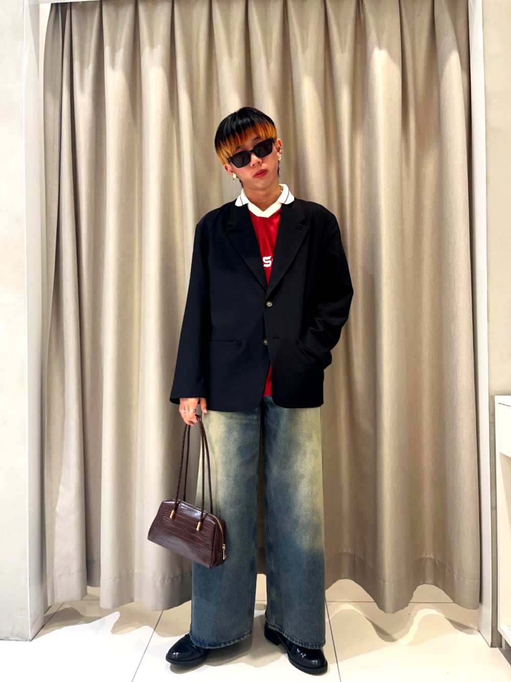 皆さんこんばんわ!アーモンドです! 今回はジャケットをメインにコーデを組んでみました! 中には赤色のフットボールシャツを着て 下には、ヴィンテージのパンツで合わせ 最後にサングラスでビシッと調えてみました!