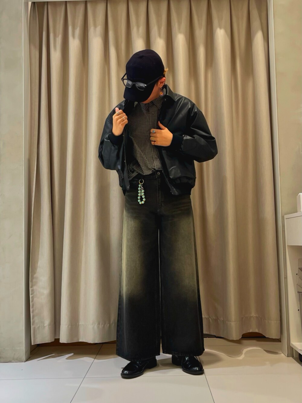 皆さんこんにちは!アーモンドです! 今回のテーマは、渋渋です! 全体的に暗めにしてそこにレザーのジャケットにチェックのシャツを加えることにより、渋さをだしてみました!