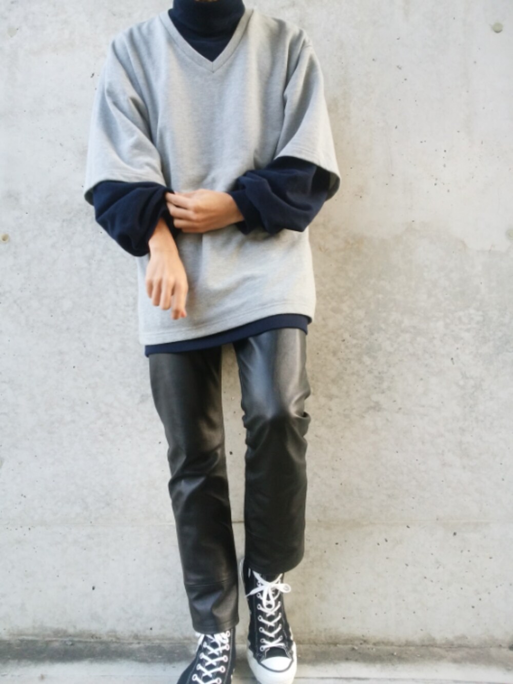 スウェットとレザー。 アウターなしはそろそろ寒い ^^;