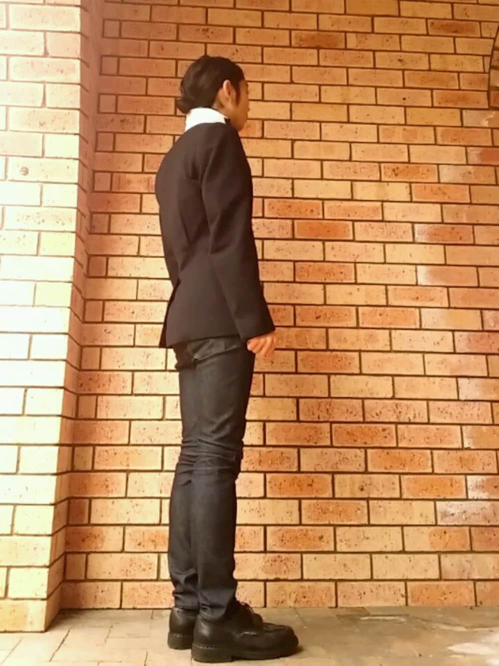 年末に投稿したコーデのJKをデニムと合わせて カジュアルダウンして着てみました。 ドリスのJKのアイコン、襟裏の白のフェルト。 背面のダーツもクラシックな印象で気に入ってます ( ^^)