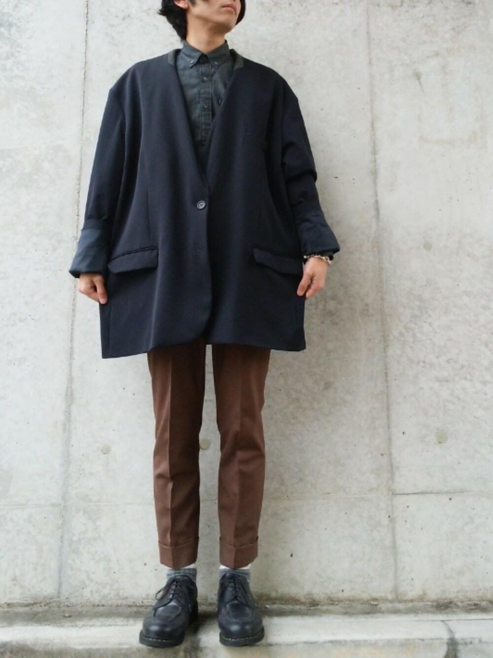 オーラーリー着回しpart2 お洒落と身嗜みは別物。 これは僕の好きな人(イメージ戦略の人)がさらっと言ってた言葉なんですが、最近とても印象に残りました。 今回の投稿はおしゃれは一旦置いといて、笑 身嗜みをテーマに洋服考えてみました。具体的なシチュエーションは初対面の女性と喫茶店に行くとき。 僕は小心者なので人と仲良くなる時、自分のことを小出しにしていくタイプなんですが、服装に性格が出てますね。 パンツシャツ靴は普通。JKは少し自分を出してみました。私はこういう人ですよと。特殊な洋服も好きですよと。 ちなみにノーカラーJK持ってなかったのでラペル折り返してノーカラー風にしました。笑 洋服っていうのは良い意味でも悪い意味でもコミュニケーションのツールとしての役割を持ってると思うのでうまく付き合っていきたいなとおもいました。 🎩春の黒フェス🎩 期間 3月26〜4月2日 参加条件 黒か紺か白が入って、モノトーンなコーデなら何でもOK👌✨ コンセプトは春にしたいブラックコーデです🌸 タグは「春の黒フェス」って入れてもらえると嬉しいです 参加者お待ちしております☺