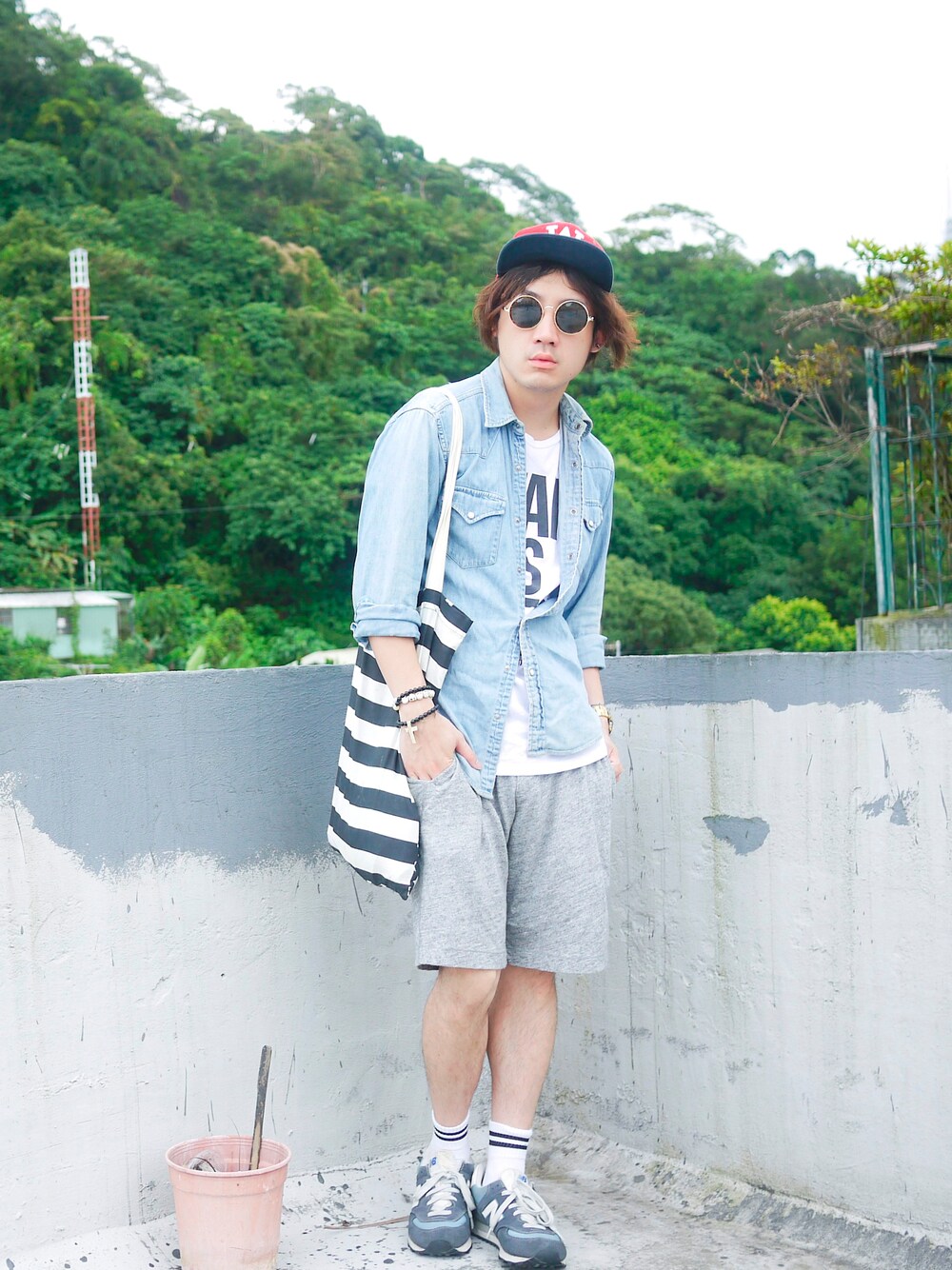 台灣男子! 台灣獨立! Simple, casual dress up. B.B.Cap: H&M Denim Shirt: UNUQLO Tee Shirt: Yoko Ono Exhibition in Aus Short Pants: UNIQLO Tote Bag: Topman Socks: Lou Ben Ta Sneakers: New Balance 657