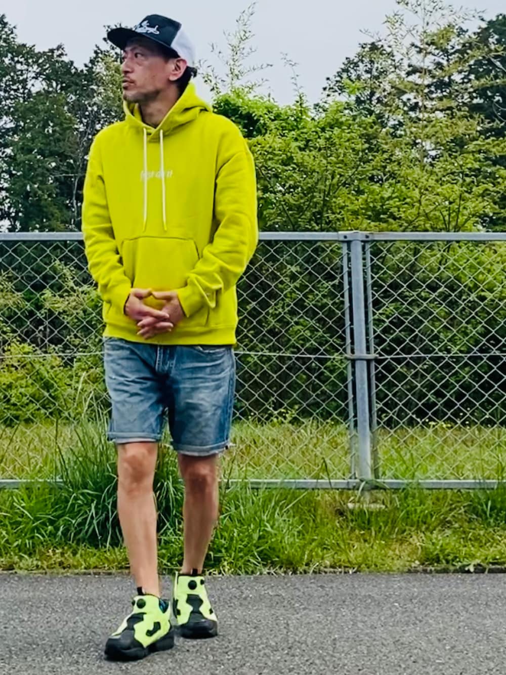 GOODMAN®️のパーカー「プルオーバーパーカ/ネオンイエロー」を使ったコーディネート