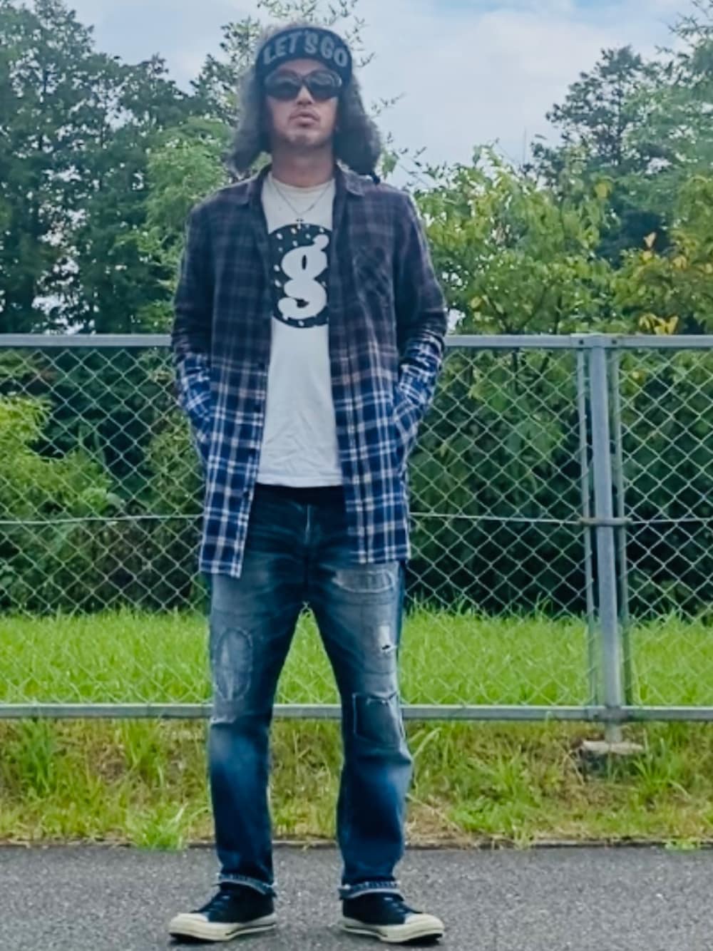 "ダイエットブッチャースリムスキンの チェックロングシャツを着ていく" ピックアップ#に乗っかりコーデ グラデーション染めのチェックロングシャツは ガウンほど長くない着丈が絶妙で好き。 パイロットキャップ被ってサングラスかけて ダメージデニム履いて コベインのちょいとコスプレ風グランジコーデで笑 キャップとパイロットキャップを重ねて 被ってます